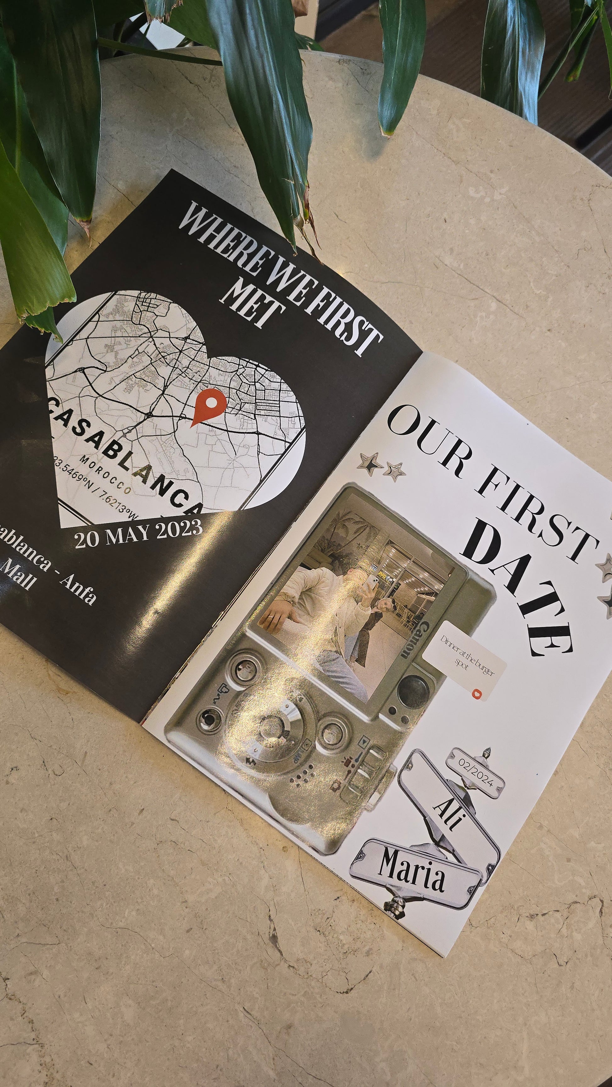 RIOUAYA est le premier service au Maroc qui transforme votre relation en une magazine personnalisée, esthétique, romantique et 100% créée à partir de votre histoire, vos photos et vos moments forts.