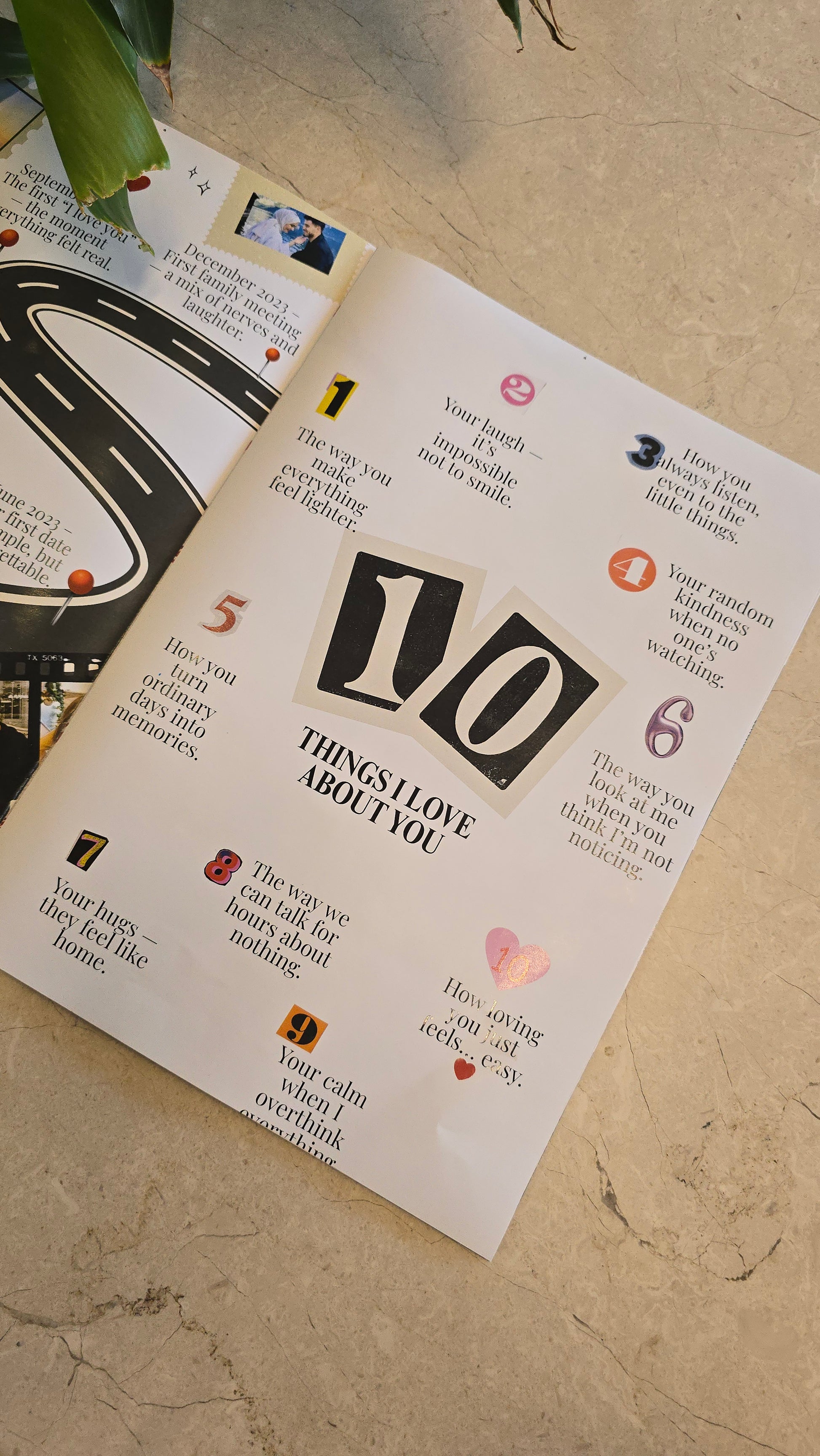 Votre partenaire devient la star de votre propre magazine d’amour — un cadeau inoubliable, touchant, et qui reste pour la vie.